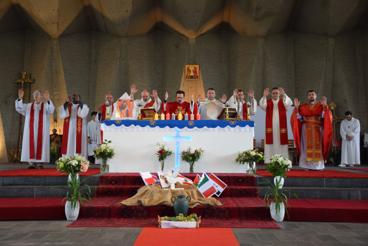 C’est ainsi que la célébration fut animée par une chorale italienne (chant d’entrée, kyrie, gloria), une chorale arabophone (alléluia, sanctus) et une chorale africaine au rythme entrainant. Un duo de chanteur polonais a également interprété le psaume 103 (104).