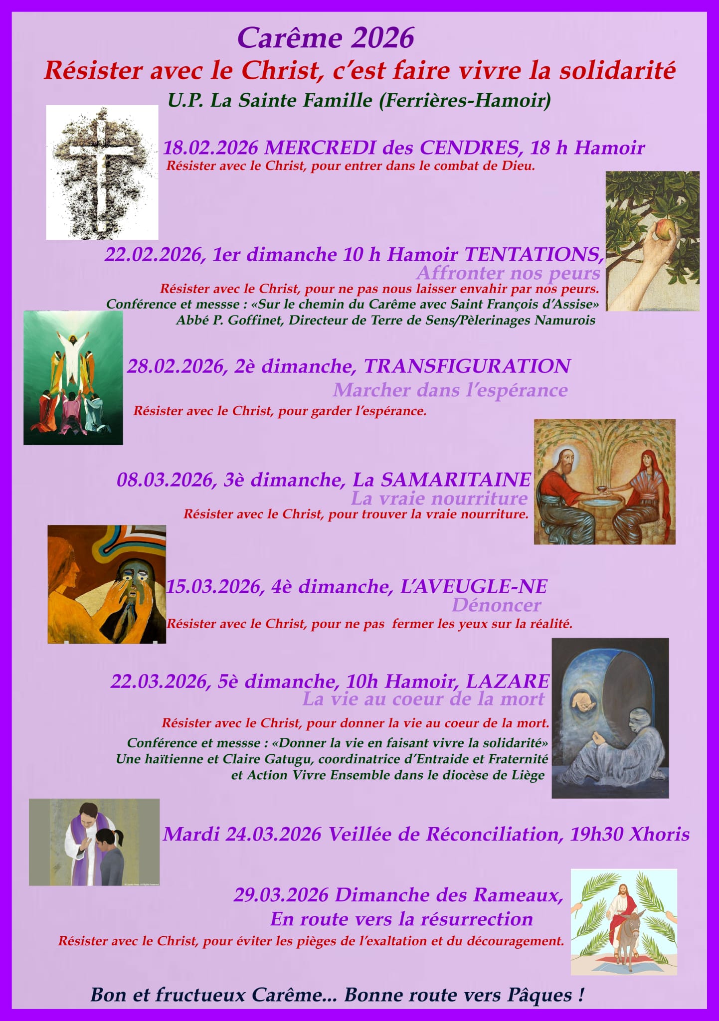 Retrouvez ci-dessous le programme prévu par l'UP de la Sainte-Famille dans le cadre du Carême 2026: