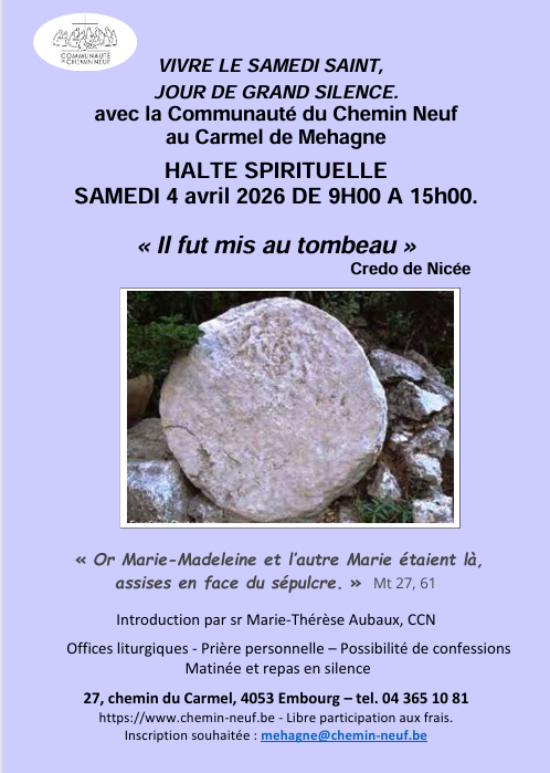 Halte spirituelle samedi 4 avril, de 9h à 15h, au Carmel de Mehagne à Embourg.