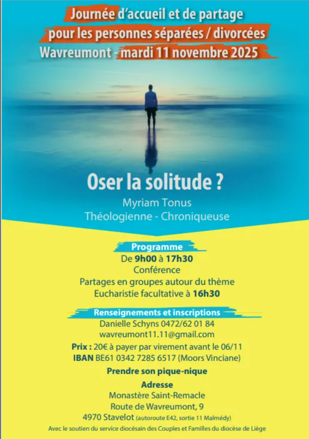 Journée d'accueil et de partage pour les personnes séparées/divorcées à Wavreumont le 11 novembre prochain