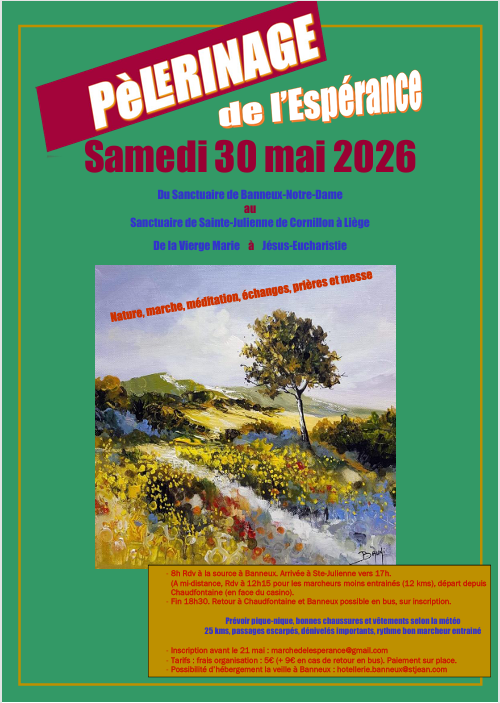 Horaire : 8h, RDV à la source à Banneux - 17h, arrivée à Sainte-Julienne