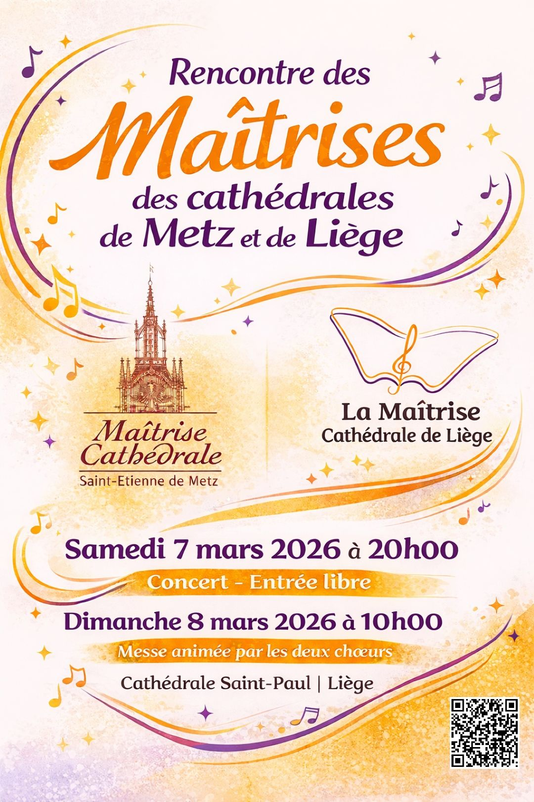 La Maîtrise de la Cathédrale de Liège accueille la Maîtrise de la Cathédrale Saint-Etienne de Metz le dimanche 8 mars (messe à 10h).