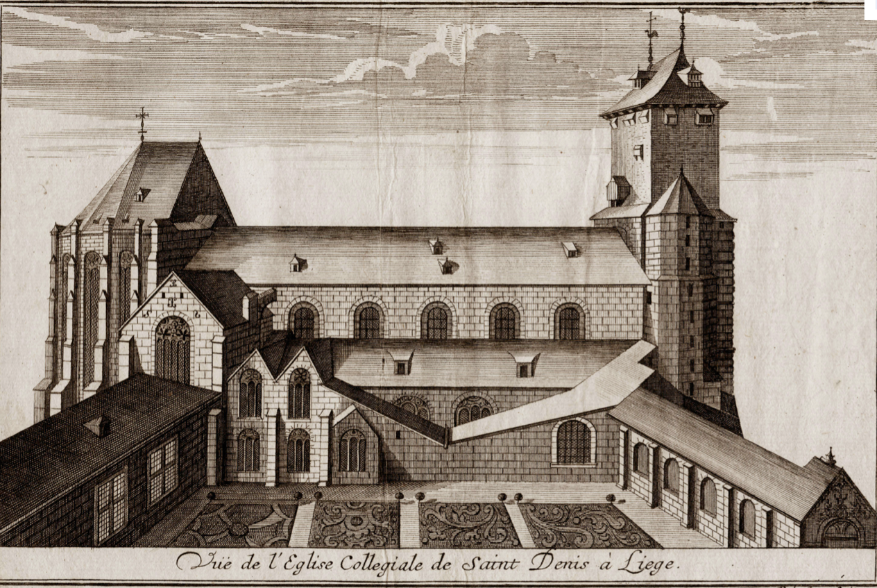 A la fin du XVIIIe siècle, le cloître nord de la collégiale Saint-Denis a été démoli. A l'époque, la collégiale était entourée de deux cloîtres, dont le cloître nord qui a été détruit et a fait place à la place Saint-Denis. Il reste encore sur les murs des traces de portes allant de l'ancien cloître détruit à la collégiale.