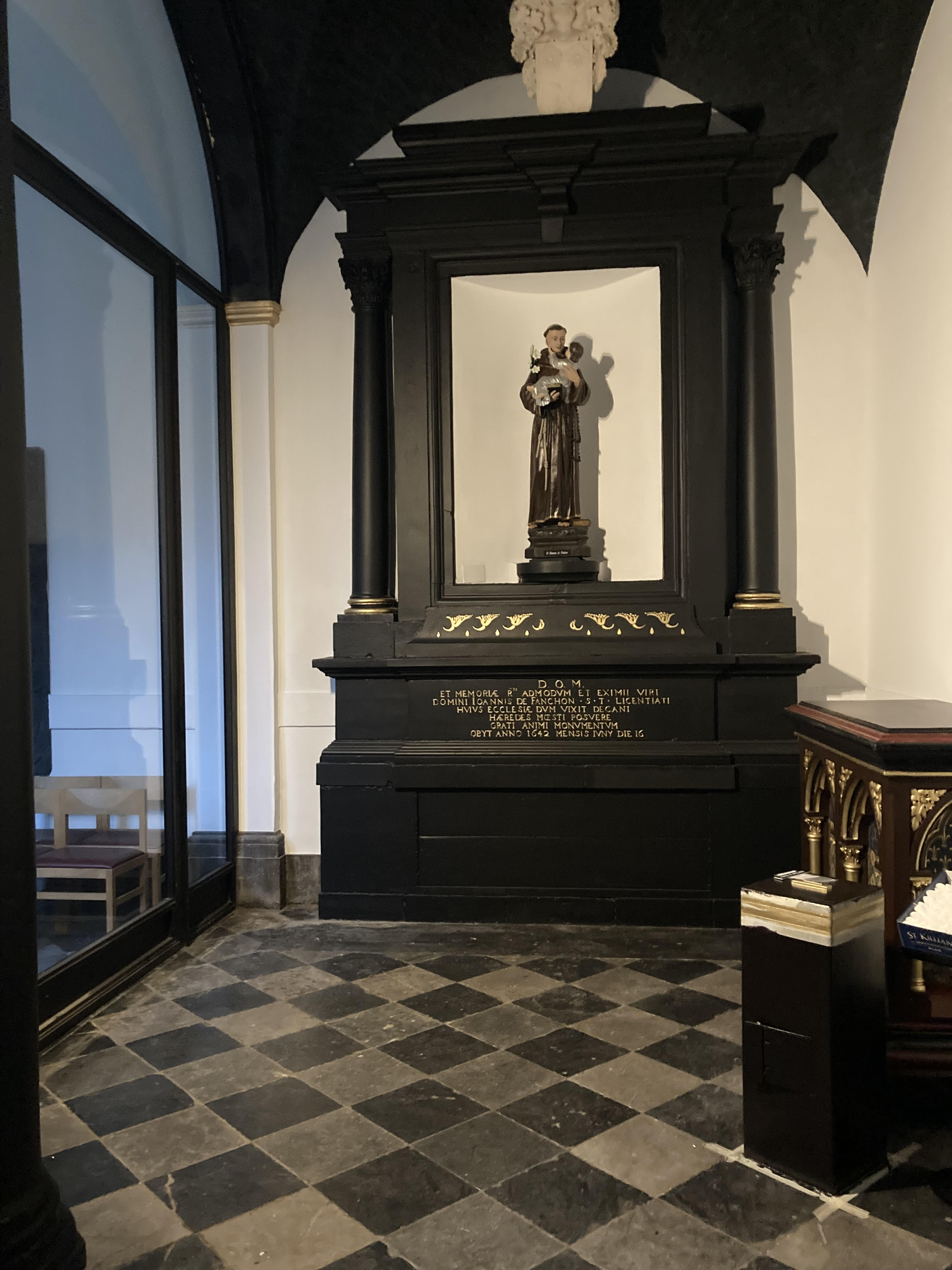 Au départ, une partie du cloître servait de lieu de rangement mais, surtout, la fabrique souhaitait trouver un lieu de célébration plus facilement chauffable pour les offices de semaine. L'administration du patrimoine devait accepter pour ça de cloisonner le cloître et elle a opté pour cette solution.