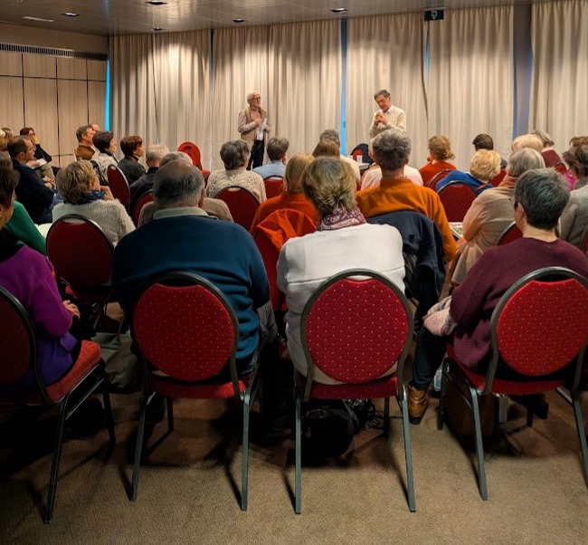Le samedi 14 février, dès 9h30, de nombreuses personnes se sont rassemblées pour assister à deux tables rondes. La première a réuni Gabriel Ringlet, prêtre et théologien, et Mireille Bavré, célébrante de spiritualité laïque. Interrogés par le diacre Paul Verbeeren, ils ont échangé sur le thème des rites, des fêtes et des célébrations. Qu’est-ce qu’une célébration ? Qui peut-être célébrant ? Telles étaient les questions posées aux deux intervenants.