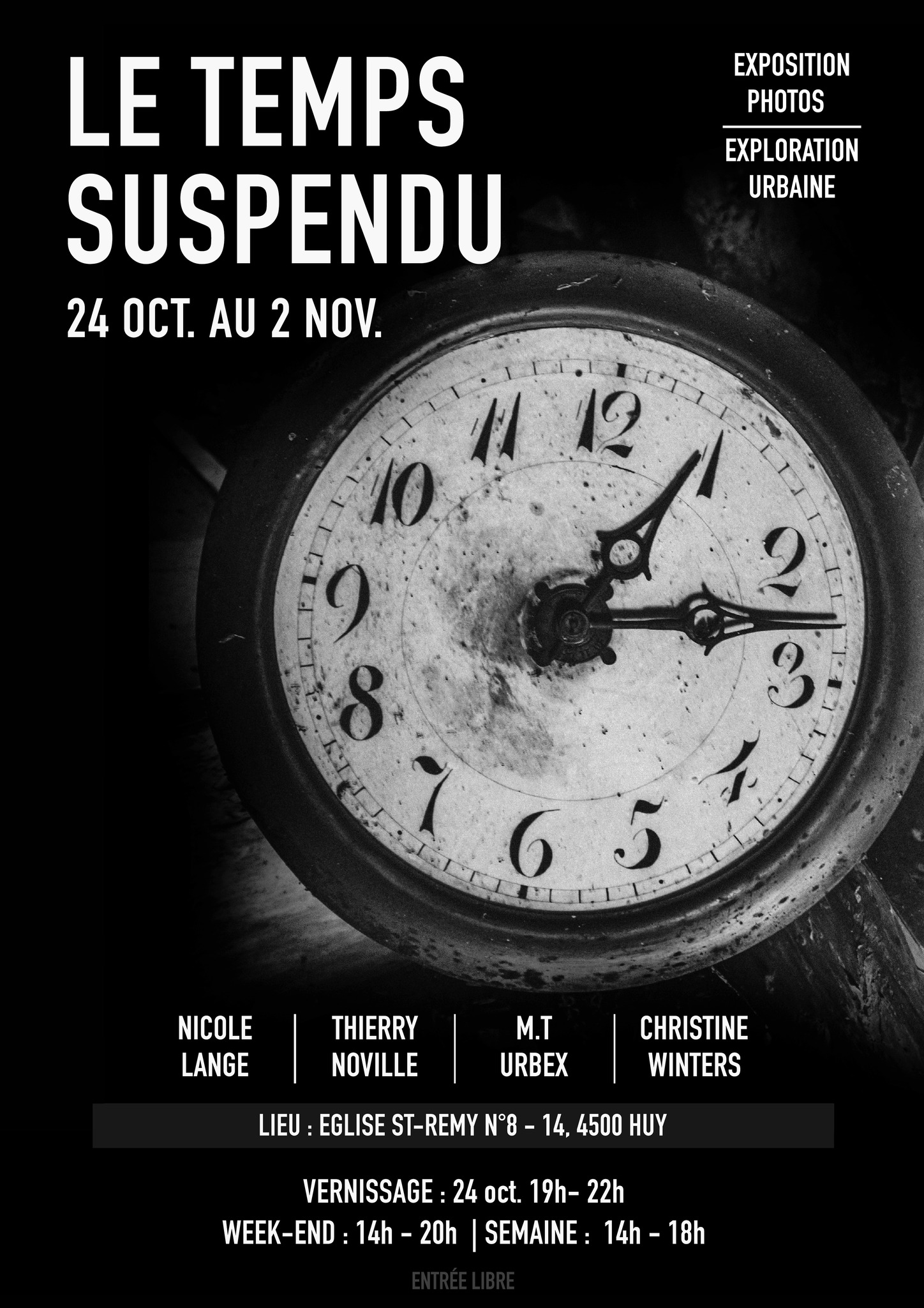 Du 24 octobre au 2 novembre, se tiendra une exposition collective de photographies - exploration urbaine - à l'église Saint-Remy à Huy.